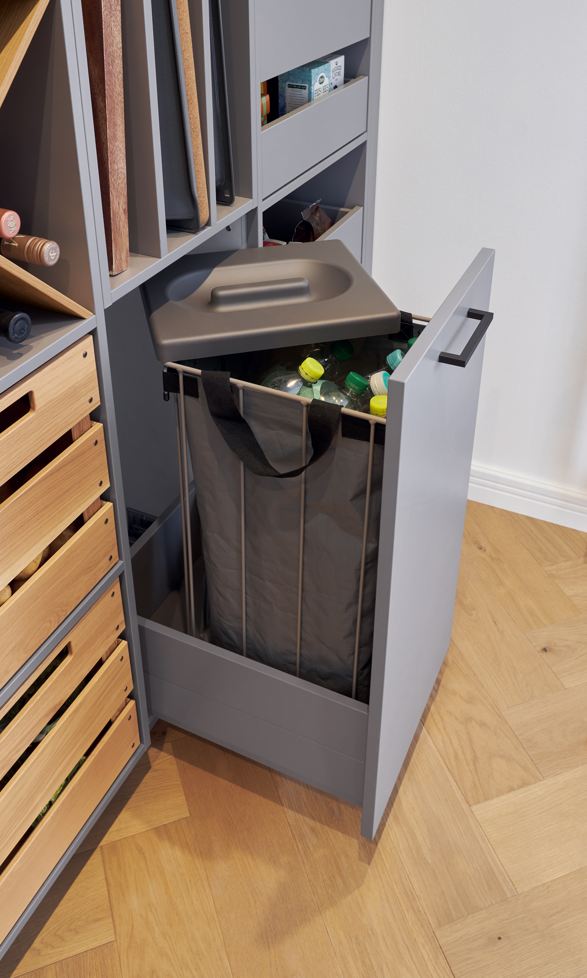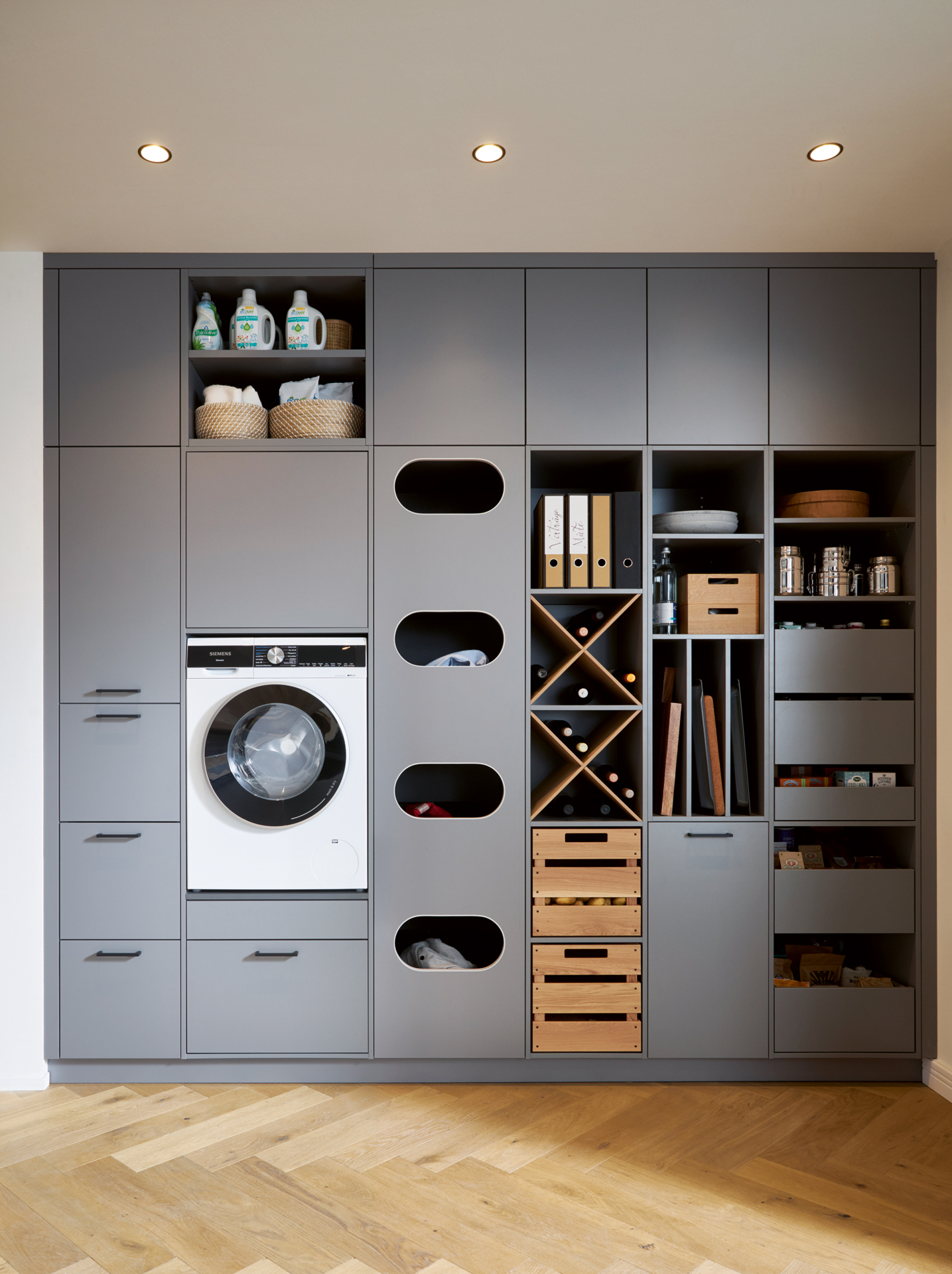 Viele Dinge, die ihr täglich benötigt – wie Vorräte, Reinigungsmittel, Küchenutensilien oder Getränkekisten – brauchen ihren eigenen Platz. Doch nicht alles davon soll sichtbar in der offenen Küche oder im Wohnbereich stehen. Hauswirtschafts- und Speisekammermöbel ermöglichen es euch, all diese Dinge unsichtbar und dennoch griffbereit zu verstauen.